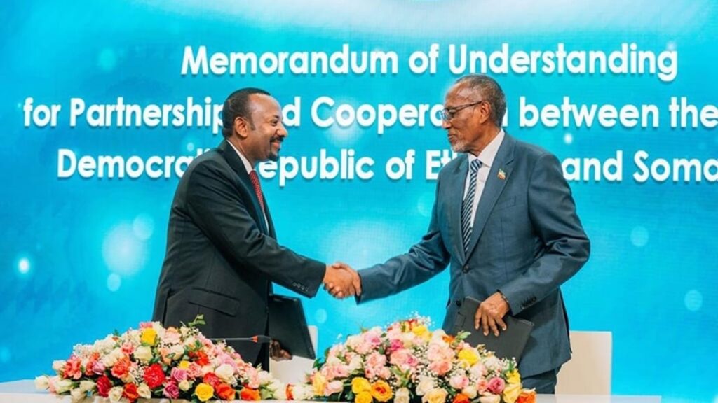 በ2023 መገባደጃ ገደማ የኢትዮጵያው ጠቅላይ ሚኒስትር አብይ አህመድ በይፋ ኢትዮጵያ በቀይ ባሕር ላይ ባለድርሻ መሆን እንደምትፈልግ ገለጹ፤ የፈረንጆቹ 2024 አዲስ አመት ዕለት ከራስ-ገዟ ሶማሊላንድ ጋር ለ50 አመት የሚቆይ የባሕር መውጫ ለማግኘት የሚያስችል የመግባቢያ ሰነድ ከወቅቱ የሶማሊላንድ ፕሬዚዳት ሙሴ ቢሂ ጋር በአዲስ አበባ ተፈራረሙ