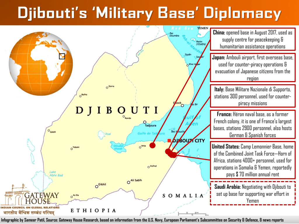 የመጀመሪያው የባሕር ደህንነትን ማስጠበቅ በሚል ሰበብ ተፎካካሪ ፍላጎቶች ያላቸው እንደቻይናና አሜሪካ ያሉ ልዕለ-ሃያላን ቀይ ባሕርና አካባቢውን ለመቆጣጠር እሽቅድምድም ውስጥ እንዲገቡ ማድረጉ ነው፤ እነዚህ አገራት የባሕር ሃይላቸውን በቀይ ባሕር አካባቢ ማስፈር የጀመሩት ከዚህ በኋላ ነው፤ በዚህም በ2001 አሜሪካ የባሕርሃይሏን በጅቡቲ አሰፈረች፤ ቻይና በበኩሏ በ2008 ከአገሯ ውጭ ለመጀመሪያ ጊዜ የባሕር ጦር ሰፈር በጅቡቲ አቋቋመች፤ በጅቡቲ የጦር ሰፈር ያላቸው አሜሪካና ቻይና የቀይ ባሕር ቀጠና የአለማቀፍ ጂኦፖለቲካ ትኩሳት ነጥብ እንዲሆን እያደረጉት ይገኛሉ